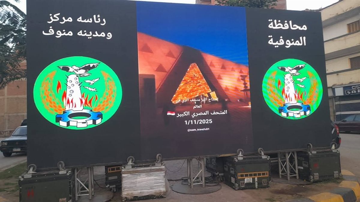 ميادين المنوفية تتزين بشاشات عرض لنقل إحتفالية افتتاح المتحف المصري الكبير |صور