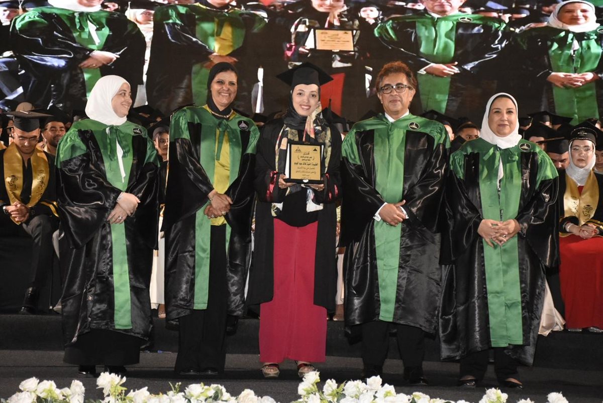 وأشادت بالدعم الكبير من الدكتور محمد ضياء زين العابدين رئيس الجامعة وبجهود الدكتور كريم البطوطي عميد الكلية والدكتورة داليا القرشي وكيل الكلية للدراسات العليا والبحوث، والدكتورة ولاء حامد وكيل الكلية لشؤون خدمة المجتمع وتنمية البيئة.