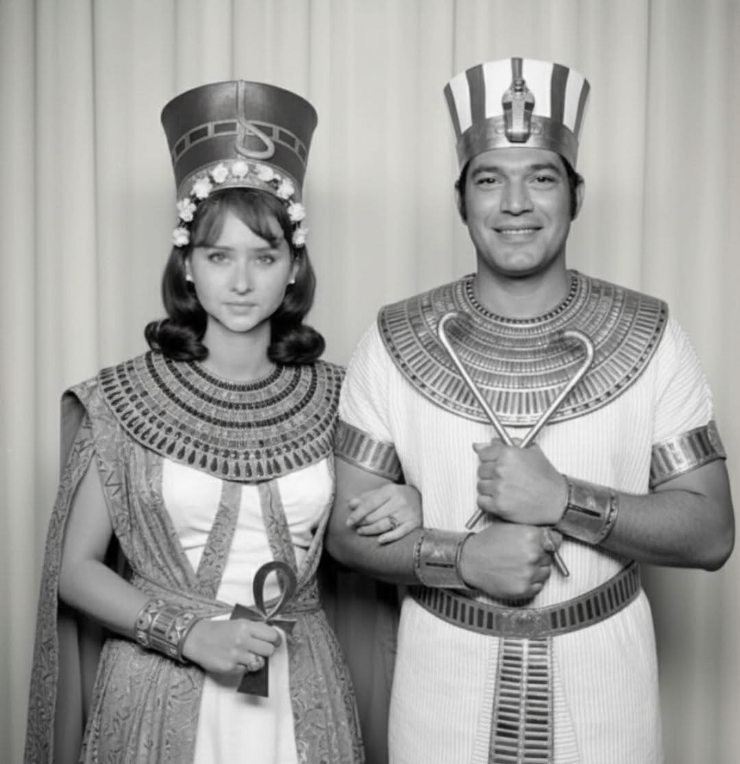 "ذاتشبسوت وعبدالمجيد أتون" .. نيللي كريم وباسم سمرة بالزي الفرعوني احتفالًا بافتتاح المتحف المصري الكبير