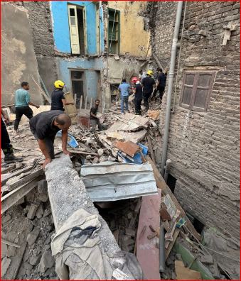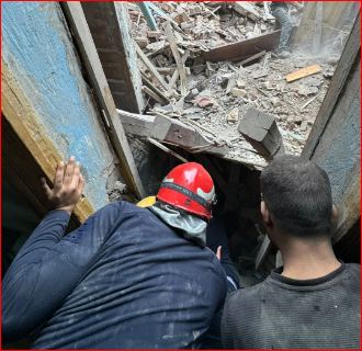 بالإنتقال والوصول تبين سقوط عدد (3) غرف بالطوابق الأول و الثاني والثالث على الأرضي ، بعقار مكون من عدد (4) طوابق بمحل البلاغ كما تبين وجود شخصين محتجزين أسفل الأنقاض ( وتم استخراج رجل مسن – ويتبقى طفلة)، و جاري استخراجها بمعرفة القوات وتم اتخاذ الإجراءات القانونية اللازمة تجاه الواقعة.