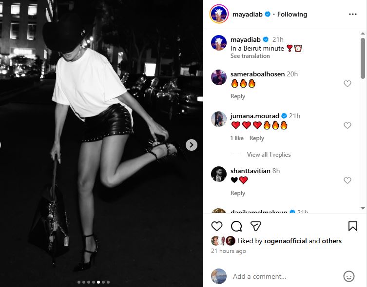 وشاركت مايا دياب متابعيها بأحدث إطلالاتها عبر حسابها الشخصي بموقع تبادل الفيديوهات والصور الأشهر إنستجرام.