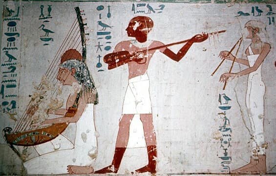 ويشير الأثريون إلى أن الموسيقى في مصر القديمة لم تكن مجرد فن، بل كانت مقدسة، ومرافقة للطقوس الدينية والاحتفالات والمواكب والأعياد الكبرى للآلهة، حيث كانت الفرق الموسيقية تتكون من الكهنة بعزف القيثارات، تحت قيادة عازف أعمى، مع رقص الفتيات وغناء الأناشيد والترانيم، لتصبح جزءًا من كل مرافق الحياة اليومية، في المحاريب والمصاطب والقبور والأعياد والأفراح والحفلات.