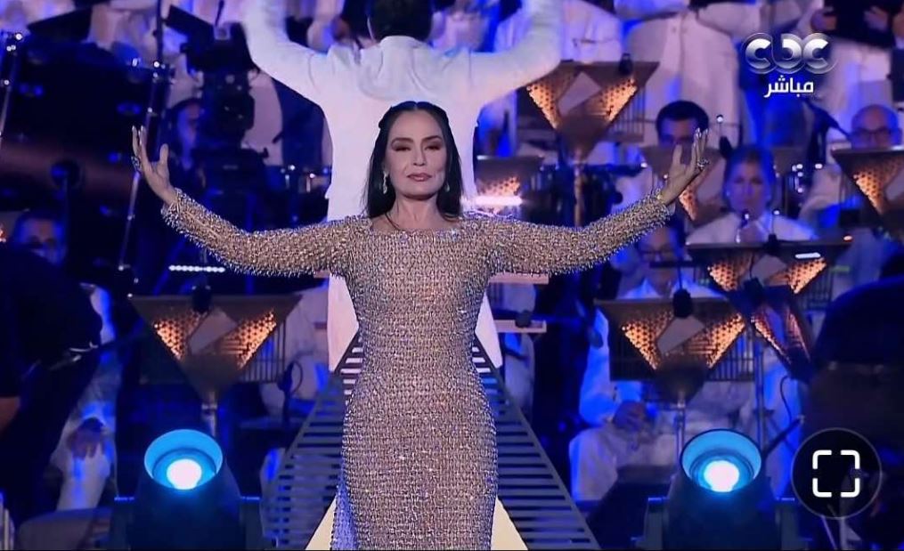 واختارت ترك خصلات شعرها الأسود الطويل منسدلة وراء ظهرها بشكل ساحر ووضعت لمسات هادئة من المكياج المرتكز على الألوان الترابية مع تحديد عينيها بالكحل والماسكرا السوداء لتبرز سحر ملامحها الفرعونية بأسلوب جذاب يخطف قلوب جمهورها كعادتها.