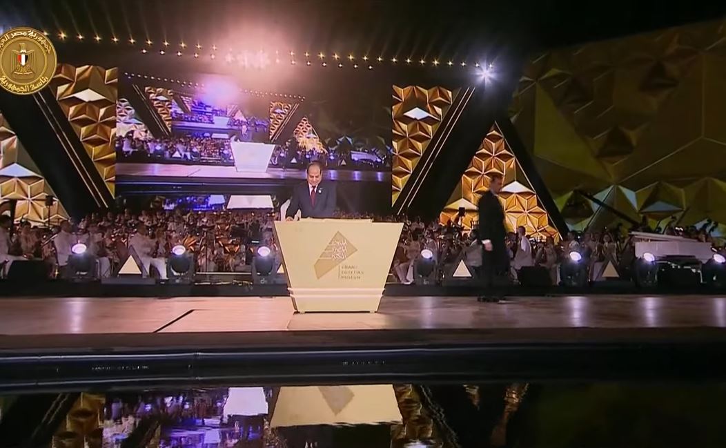 وضع الرئيس عبد الفتاح السيسي آخر قطعة من مجسم المتحف المصري الكبير، معلنا ذلك افتتاح المتحف.