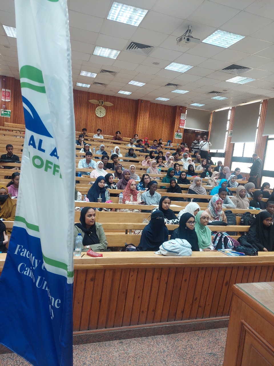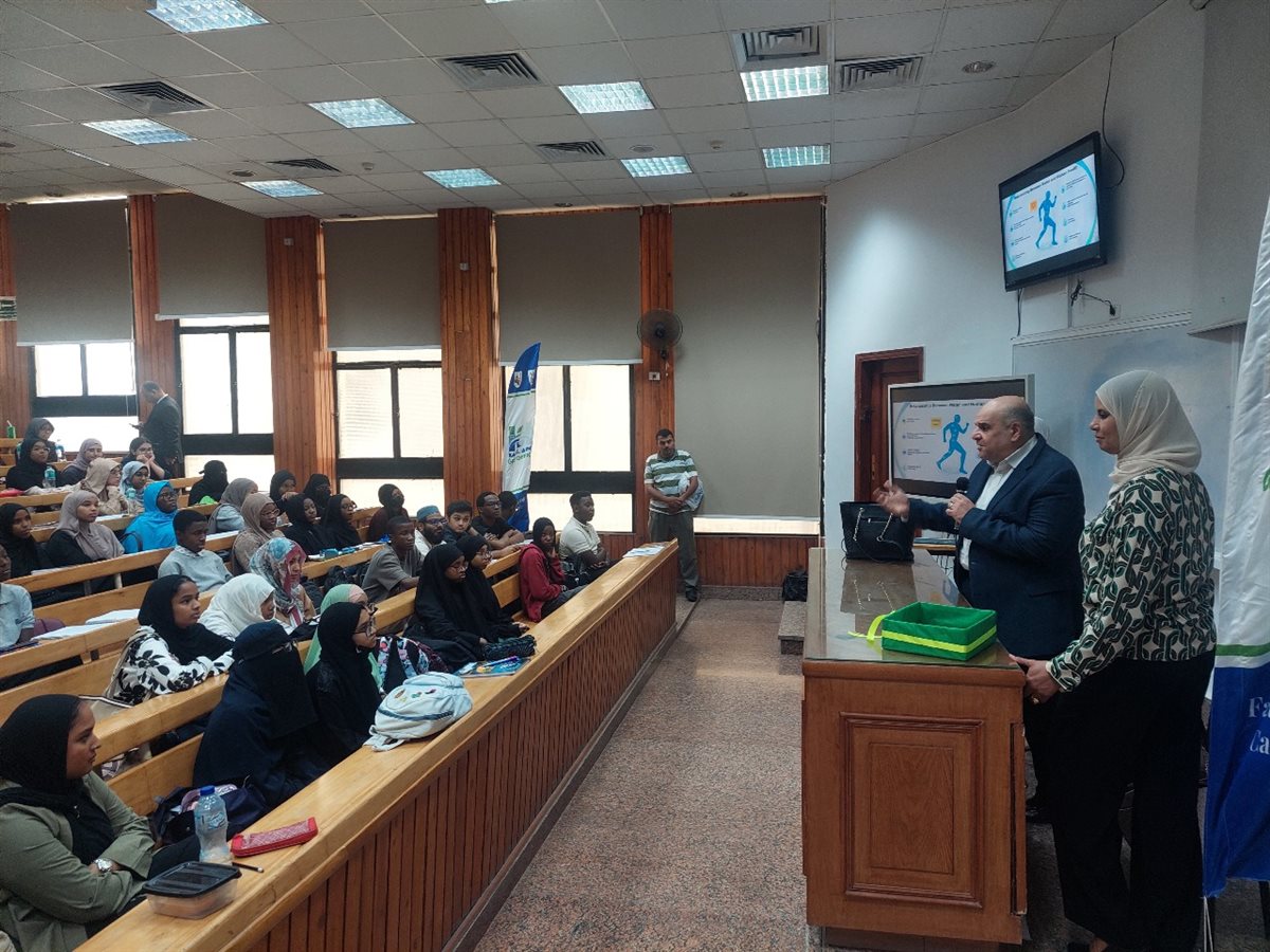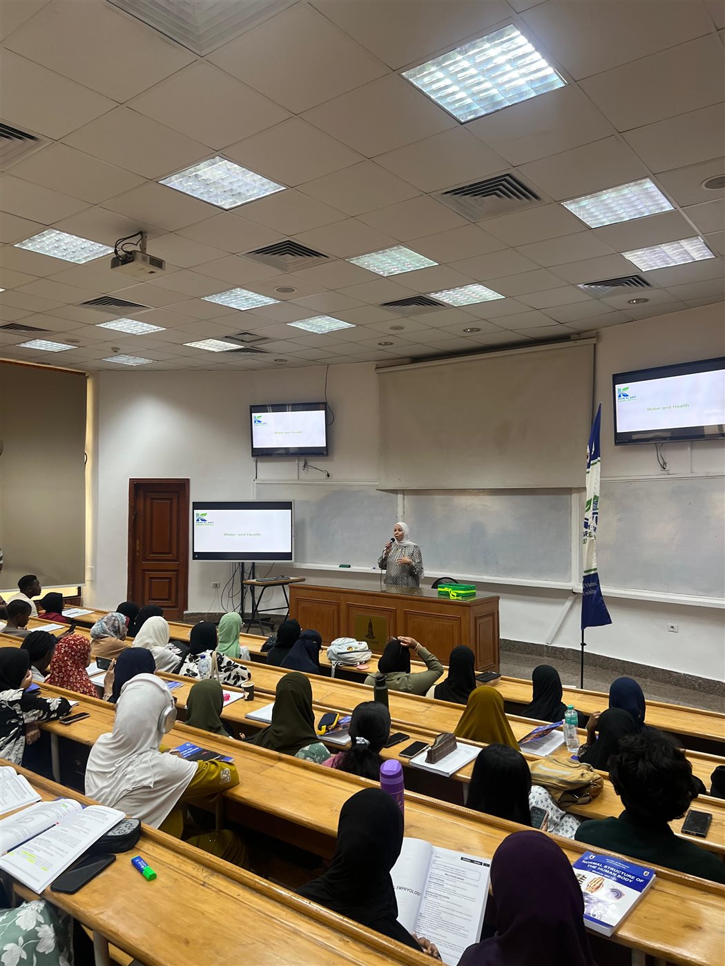 وشاركت الدكتورة رانيا زايد ميدانيًا في فعاليات الحملة، والتي تضمنت المرور على الطلاب المصريين والوافدين داخل المدرجات والقاعات الدراسية للتعريف بأنشطة المكتب الأخضر، إلى جانب تنظيم ندوة تثقيفية بعنوان “المياه والصحة” ركزت على العلاقة الوثيقة بين جودة المياه وصحة الإنسان، وطرق الحفاظ على موارد مصر المائية وترشيد استهلاكها.