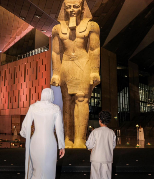 فستان آية السيسي يعكس سحر الحضارة الفرعونية في حفل افتتاح المحتف الكبير (تفاصيل)