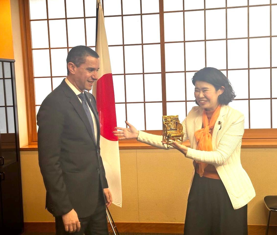 في إطار الزخم المتزايد فى العلاقات المصرية اليابانية، عقد السفير راجي الإتربي، سفير مصر لدى اليابان، إجتماعاً مع السيدة "أَيانو كونيميتسو"، وزيرة الدولة اليابانية للشئون الخارجية، التي عبّرت عن تطلعها لزيارة القاهرة كمبعوثة خاصة لدولة رئيسة الوزراء "ساناي تاكايتشي" للمشاركة في الحفل الرسمي لافتتاح المتحف المصري الكبير، ناقلةً تحيات رئيسة الوزراء ومعبّرة عن اعتزاز بلادها بالعلاقات الاستراتيجية مع مصر، حيث أشارت إلى أن زيارتها للقاهرة ستكون الأولى التى تقوم بها خارج اليابان منذ توليها المنصب.