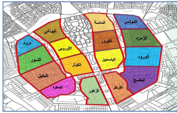 ولفت إلى أن الأحياء حملت أسماء جديدة مستوحاة من الطبيعة والهوية الجمالية للمدينة، بدلاً من الأرقام التقليدية التي كانت تُستخدم سابقًا، وجاءت الأسماء الجديدة على النحو التالي: