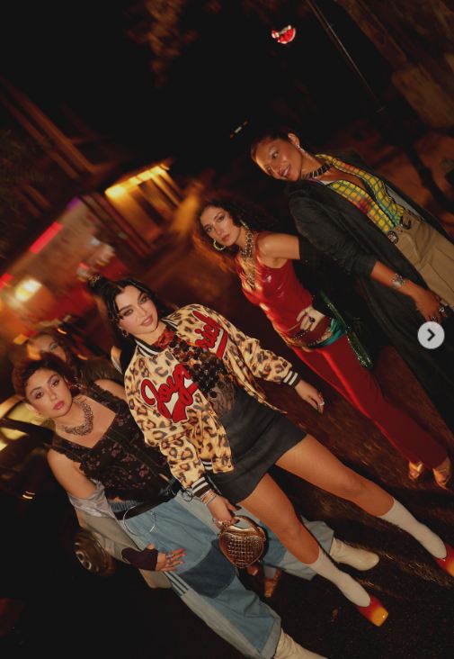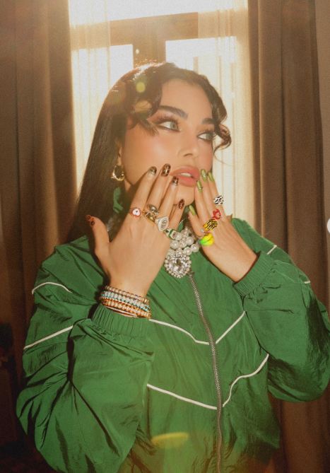 ومن الناحية الجمالية، فضلت ترك خصلات شعرها منسدلة وراء ظهرها بشكل ناعم ووضعت مكياجًا صاخبًا مرتكزًا على الألوان الترابية مع تحديد عينيها بالكحل والماسكرا السوداء ولون الكشمير في الشفاه.