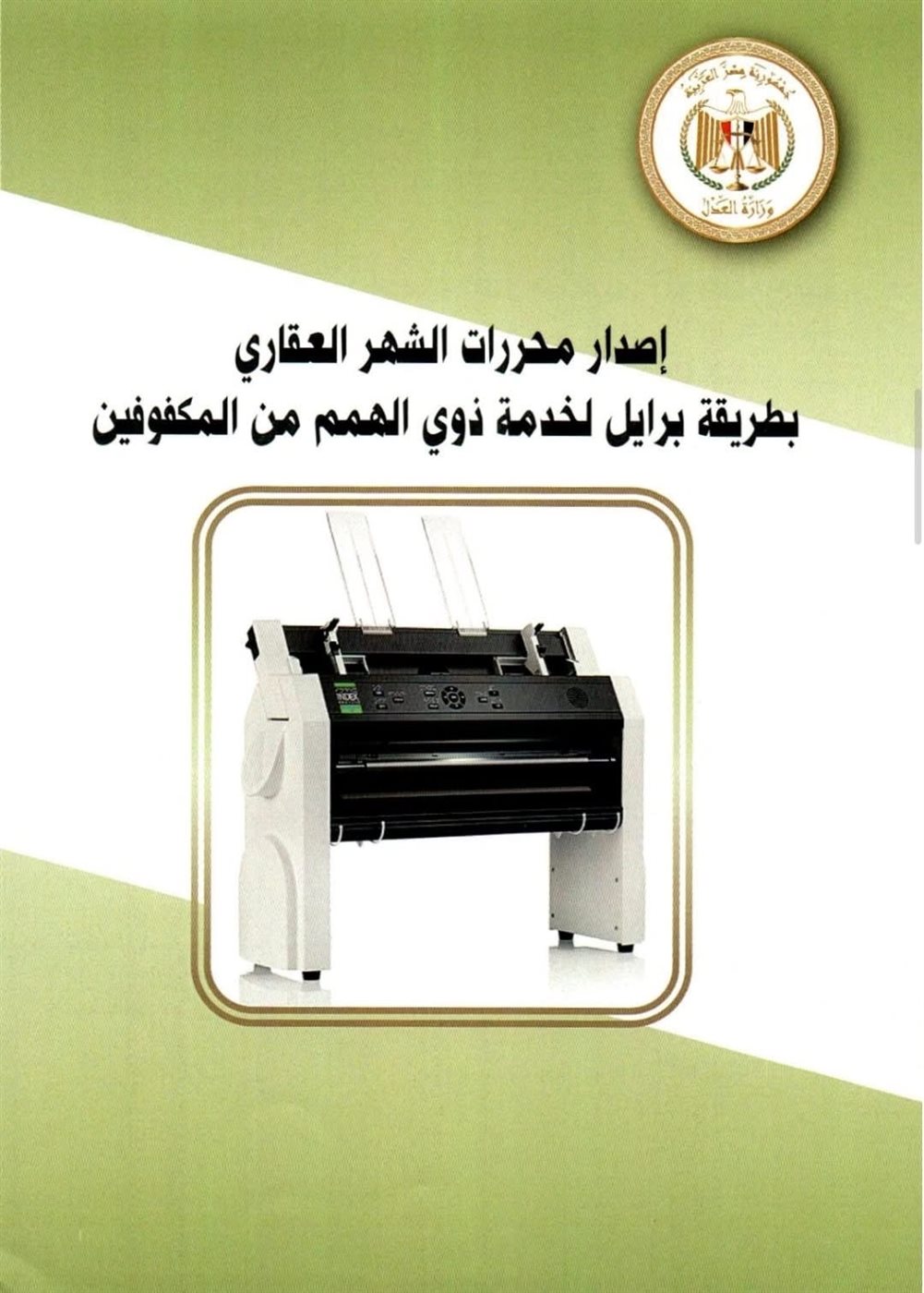تعاون المجلس القومي للإعاقة مع وزارة العدل في إتاحة إصدار محررات الشهر العقاري بطريقة برايل للأشخاص ذوي الإعاقة البصرية.