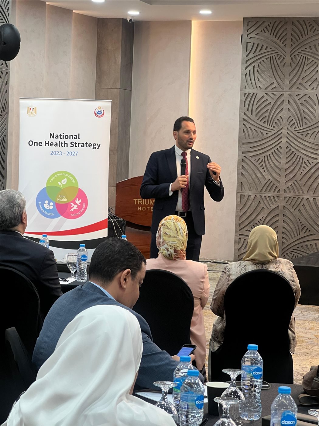 ومن جانبه، أكد ممثل وزارة الزراعة واستصلاح الأراضي أن الشراكة بين القطاعين الصحي والبيطري تُعد حجر الزاوية في تحقيق نهج الصحة الواحدة، مشيرًا إلى أن الوزارة تعمل جنبًا إلى جنب مع وزارة الصحة والسكان في تطبيق الاستراتيجية القومية للصحة الواحدة، موضحًا أن التعاون البحثي يمثل ركيزة أساسية لدعم اتخاذ القرار المبني على الأدلة، ولمواجهة التحديات الصحية المرتبطة بالحيوان والبيئة بطريقة علمية وتكاملية.