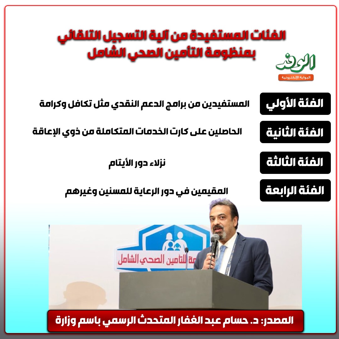 الفئات المستفيدة من آلية التسجيل التلقائي في منظومة التأمين الصحي الشامل (انفوجراف)