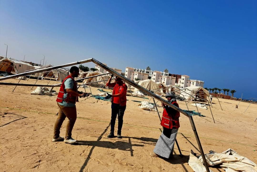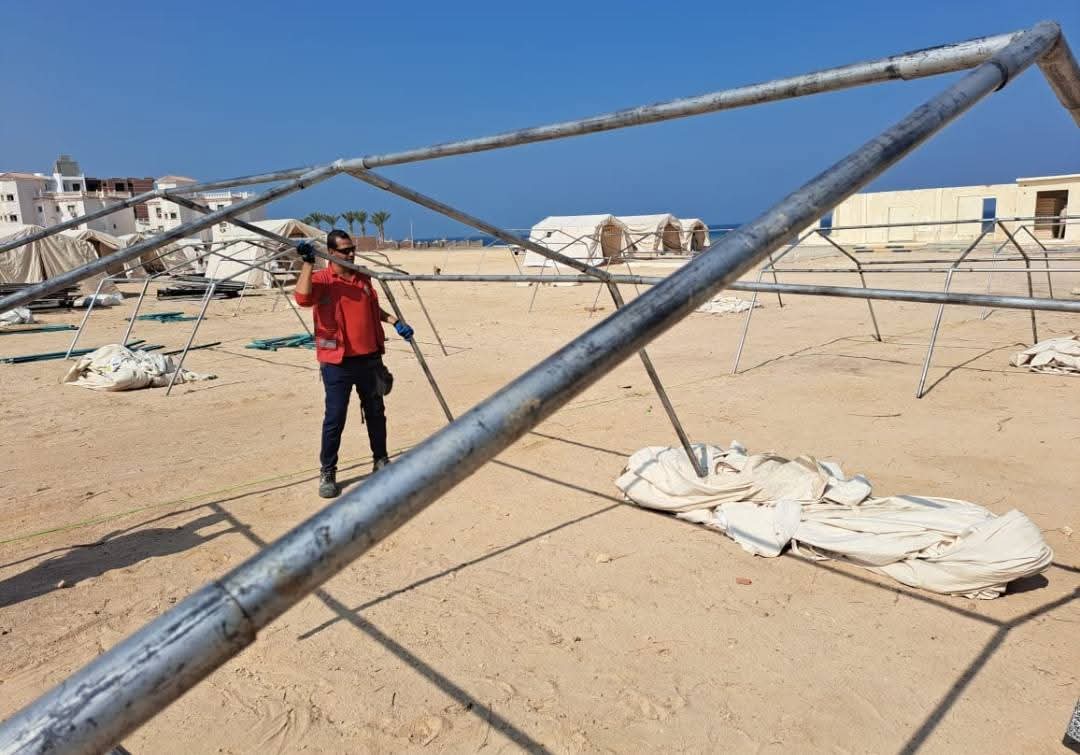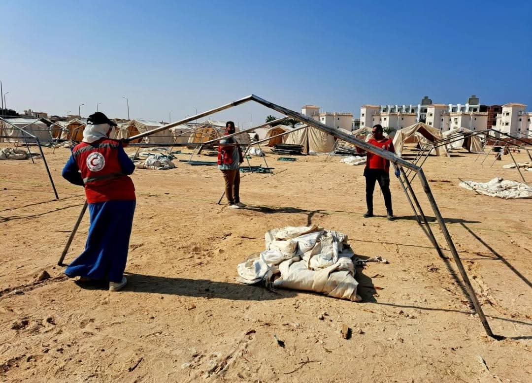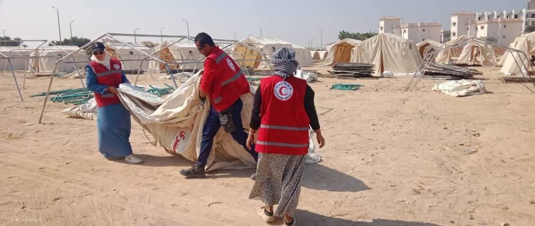 ومازال العمل مستمرًا على قدم وساق من متطوعي الهلال الأحمر فرع البحر الأحمر فى الاستعدادات والتجهيزات الخاصة بتنفيذ مخيم الايواء صقر ١٥٧ بمنطقه شمال الاحياء تحت إشراف القائد ايمن بربرى رئيس فرق الطوارئ، والقائد حمد محمد عبد الباسط رئيس لجنة الإغاثة، وعلاء رشاد مدير الجمعية وقد قام المتطوعين اليوم باستكمال نصب العديد من الخيام لتجهيز المخيم ومازال العمل مستمر حتى انتهاء أعمال المخيم .