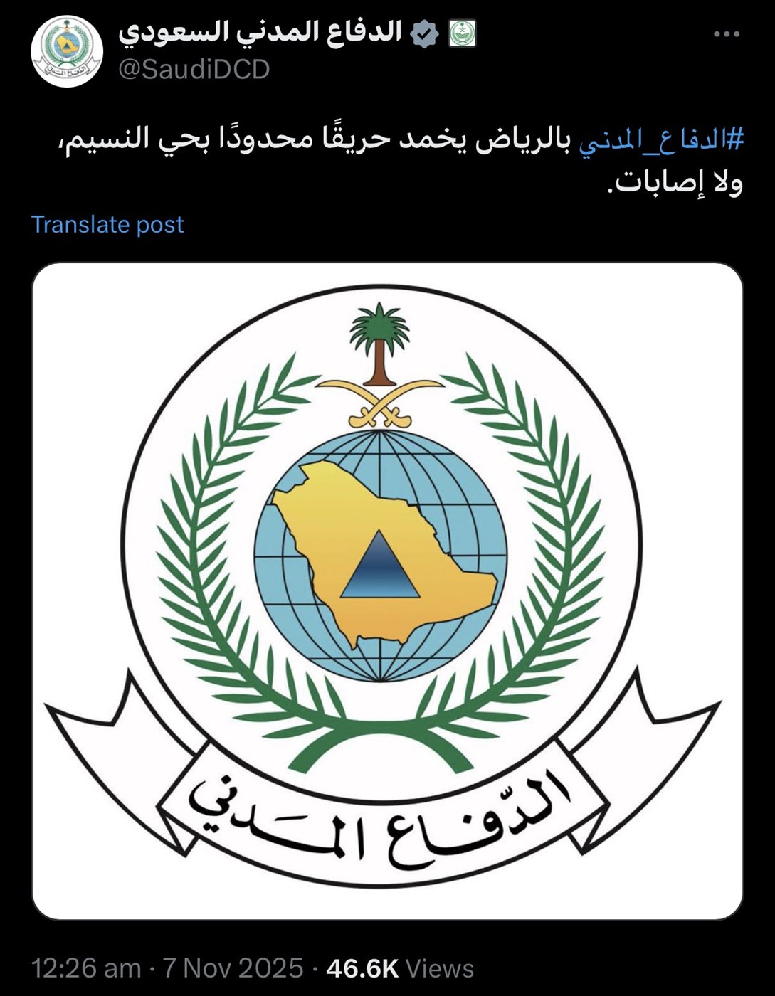 من جانبها، سرعان ما أعلنت وزارة الدفاع المدني السعودي، خلال بيان رسمي نشرته عبر صفحتها الرسمية بمنصة التغريدات المصغرة “إكس”، عن نجاح القوات الحماية المدنية في السيطرة على الحريق دون وقوع إصابات، حيث قالت: “الدفاع المدني بالرياض يخمد حريقًا محدودًا بحي النسيم ولا إصابات”.