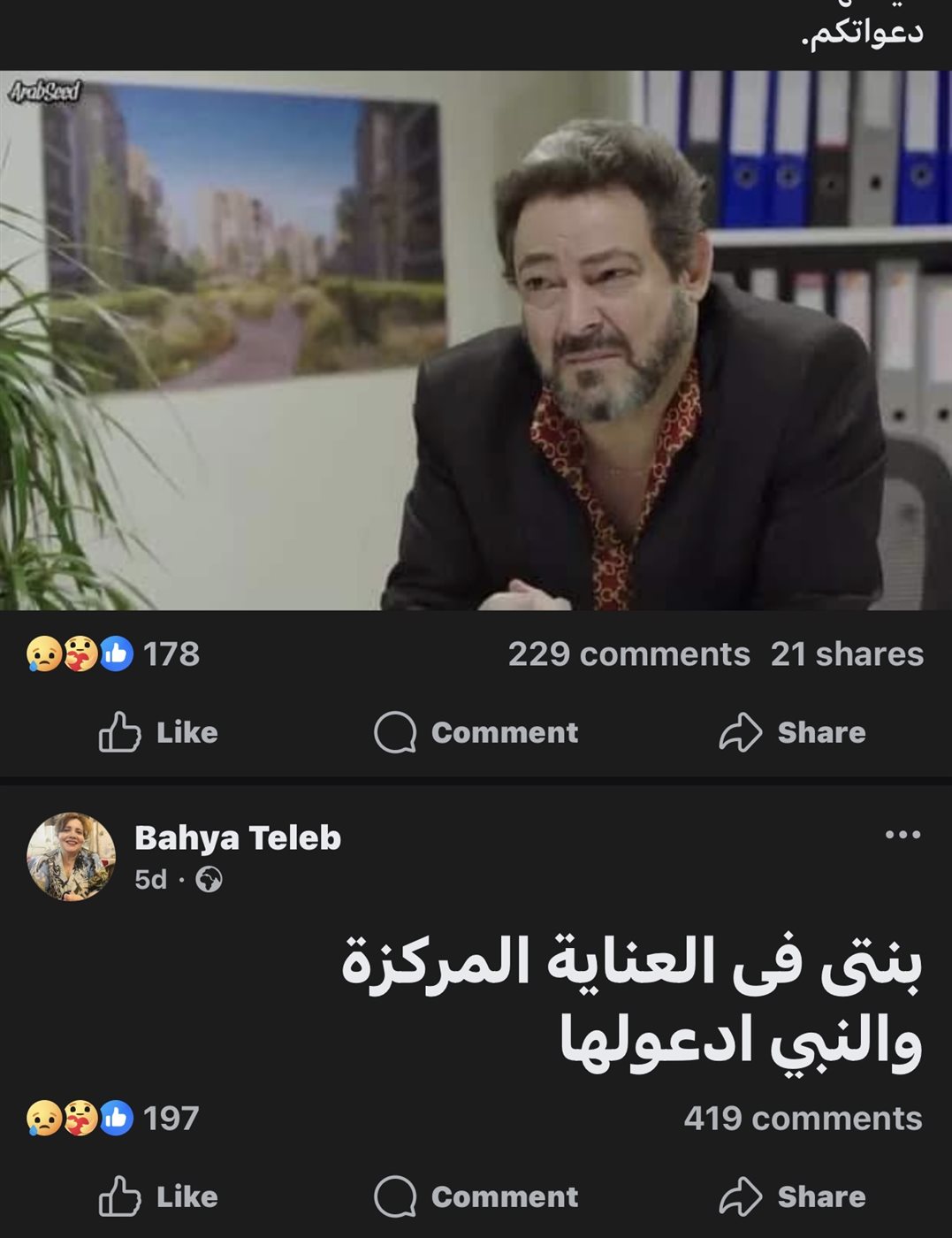 "انتي بتدلعي".. كارثة طبية وراء حجز ابنة الفنان شريف عواد بالعناية المركزة