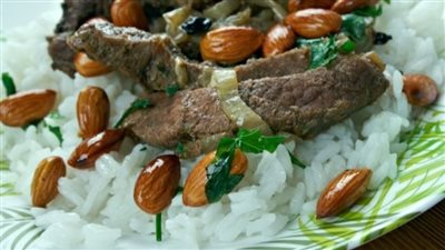 1. ينقع الأرز ويغسل ويصفى، ويرش عليه بهارات القرفة، والبهار السادة، والفلفل الأسود وجوزة الطيب، والملح، ونضع اللحمة المفرومة.