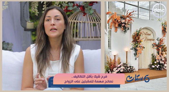 كشفت منال محمد، منظمة حفلات زفاف، عن أهم النصائح لإقامة حفل زفاف شيك بأقل التكاليف الممكنة، وذلك خلال تصريحاتها لكاميرا برنامج ست ستات المذاع على شاشة DMC.