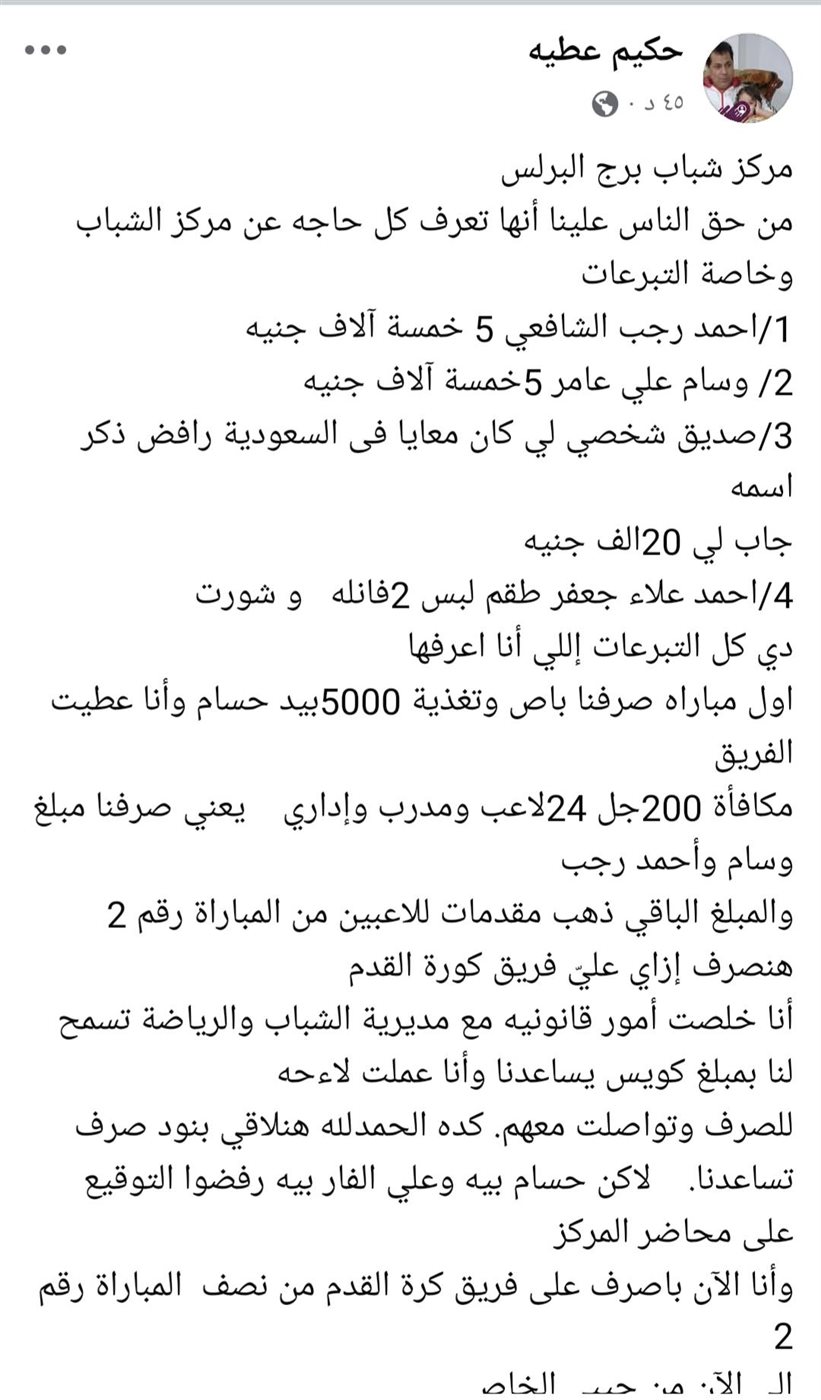 وزاد الموقف تأزمًا بعد تصريحات الكابتن حكيم عطية، رئيس مجلس الإدارة، الذي أعلن صراحة أنه لم يعد قادرًا على تمويل الفريق من نفقاته الشخصية كما كان يفعل خلال المواسم الماضية، مما أدى إلى حالة من القلق بين اللاعبين وأفراد الجهاز الفني، وكذلك بين جماهير النادي التي تخشى توقف النشاط الكروي تمامًا.