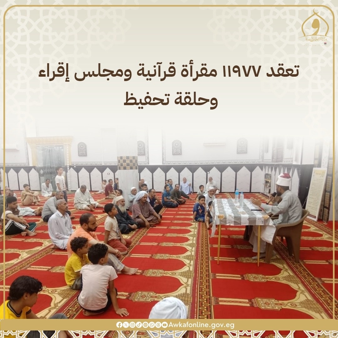 أظهر التقرير الأسبوعي أرقامًا قياسية في أنشطة وزارة الأوقاف على مستوى الجمهورية، شملت: