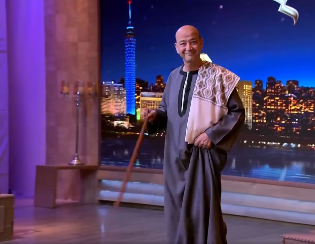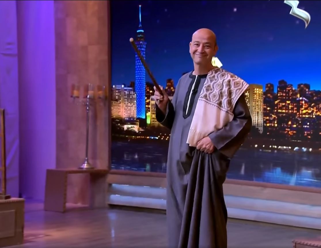 - عمرو أديب بالجلابية الصعيدي على الهواء لأول مرة