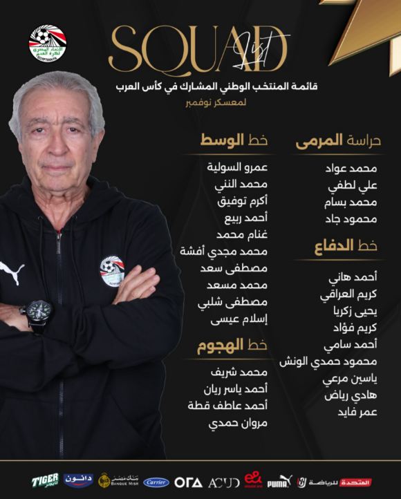 حلمي طولان يعلن قائمة منتخب مصر المشارك في كأس العرب