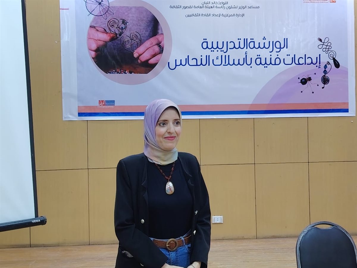 وخلال الجلسة التدريبية الأولى، أوضحت مروة جمعة أحمد، الباحثة في الفنون التشكيلية والحاصلة على ماجستير في التربية الفنية، أن فن تشكيل أسلاك النحاس يعتمد على مجموعة من التقنيات اليدوية الدقيقة مثل الطي والجدل والربط، لإنشاء أعمال فنية وزخرفية مميزة.