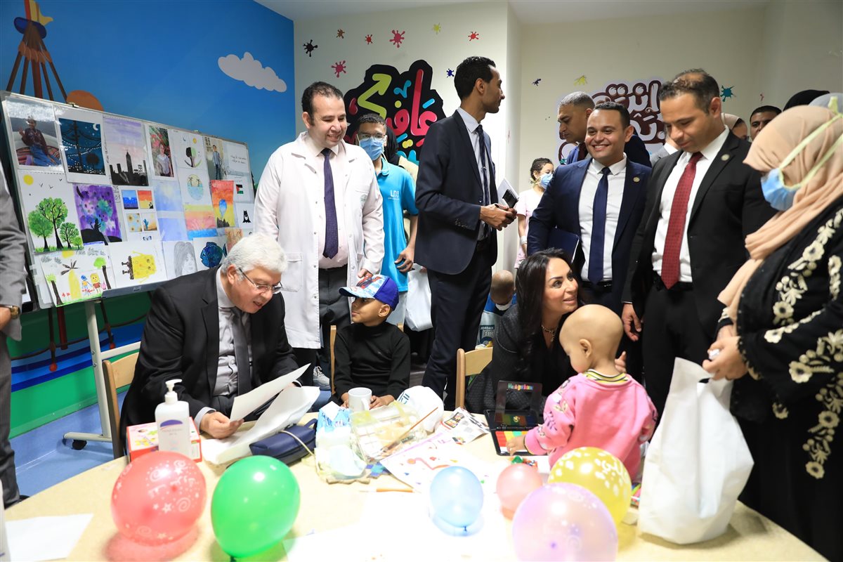 كما تفقد الوزيران العديد من أقسام العلاج الكيماوي والإشعاعي وبنك الدم وتعرفا على طبيعة العمل بداخلها، كما التقيا بعدد من الأطفال المرضى خلال تلقيهم جرعات وجلسات العلاج اللازمة، وحرصا على تقديم الدعم المعنوي لهم، وتمنيا لهم الشفاء العاجل.