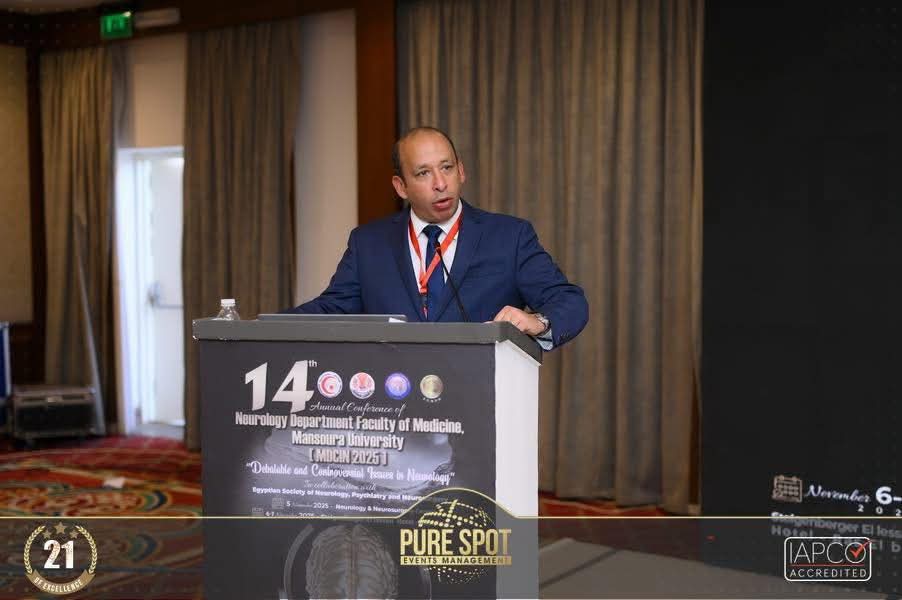 جاء ذلك خلال المؤتمر الرابع عشر لقسم طبّ المخّ والأعصاب بكلية الطب جامعة المنصورة، بحضور نخبة من أساتذة المخ والأعصاب من مختلف الجامعات والجمعيات والهيئات الطبية.