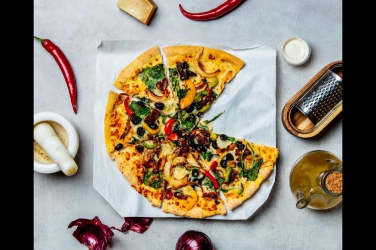 أخرجي البيتزا من الفرن، وقطعيها وقدميها ساخنة.