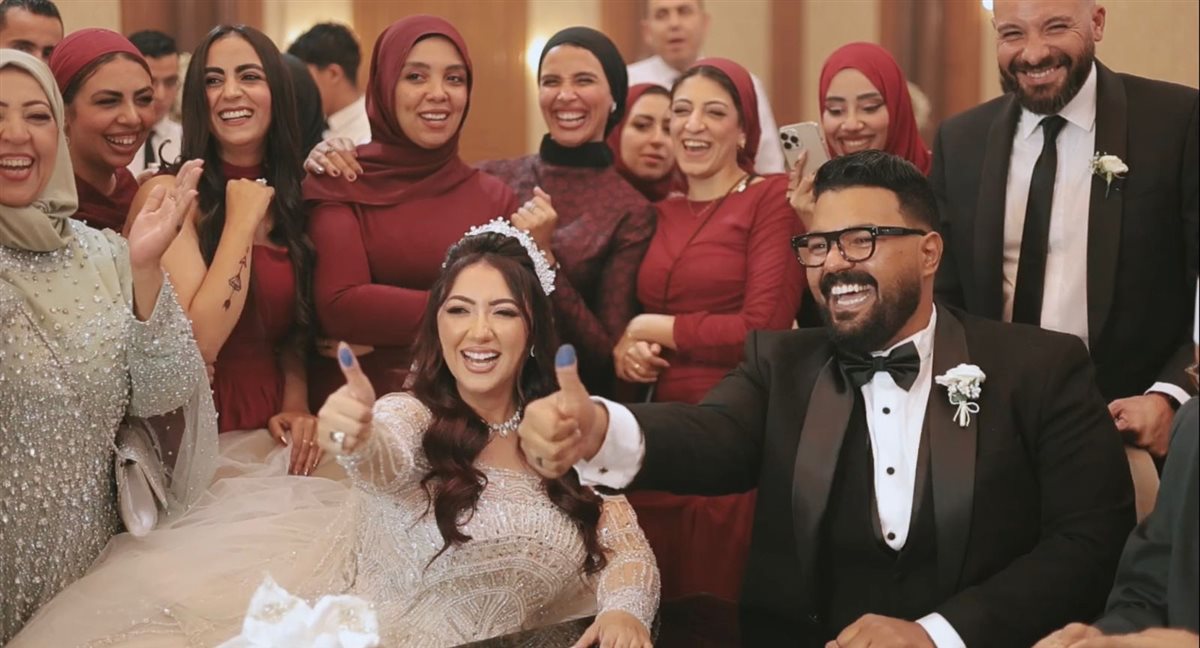 زفاف آية عبدالله ومحمد العروسي وأغنية "كوشة واحدة" مفاجأة الحفل.. صور