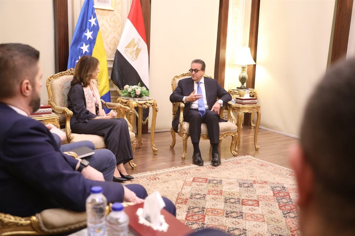 وفي بداية اللقاء، وجه الدكتور خالد عبدالغفار، نائب رئيس مجلس الوزراء وزير الصحة والسكان، الدعوة لنظيرته بدولة البوسنة والهرسك لحضور المؤتمر العالمي للسكان والصحة والتنمية البشرية، المقرر عقده في الفترة من 12-15 نوفمبر الجاري، تحت رعاية الرئيس عبدالفتاح السيسي، وذلك للتعرف عن قرب على التجربة المصرية في تطوير القطاع الصحي، ومناقشة القضايا العالمية المتعلقة بالصحة والسكان والتنمية البشرية، وتبادل الخبرات والرؤى بين الدول المشاركة.