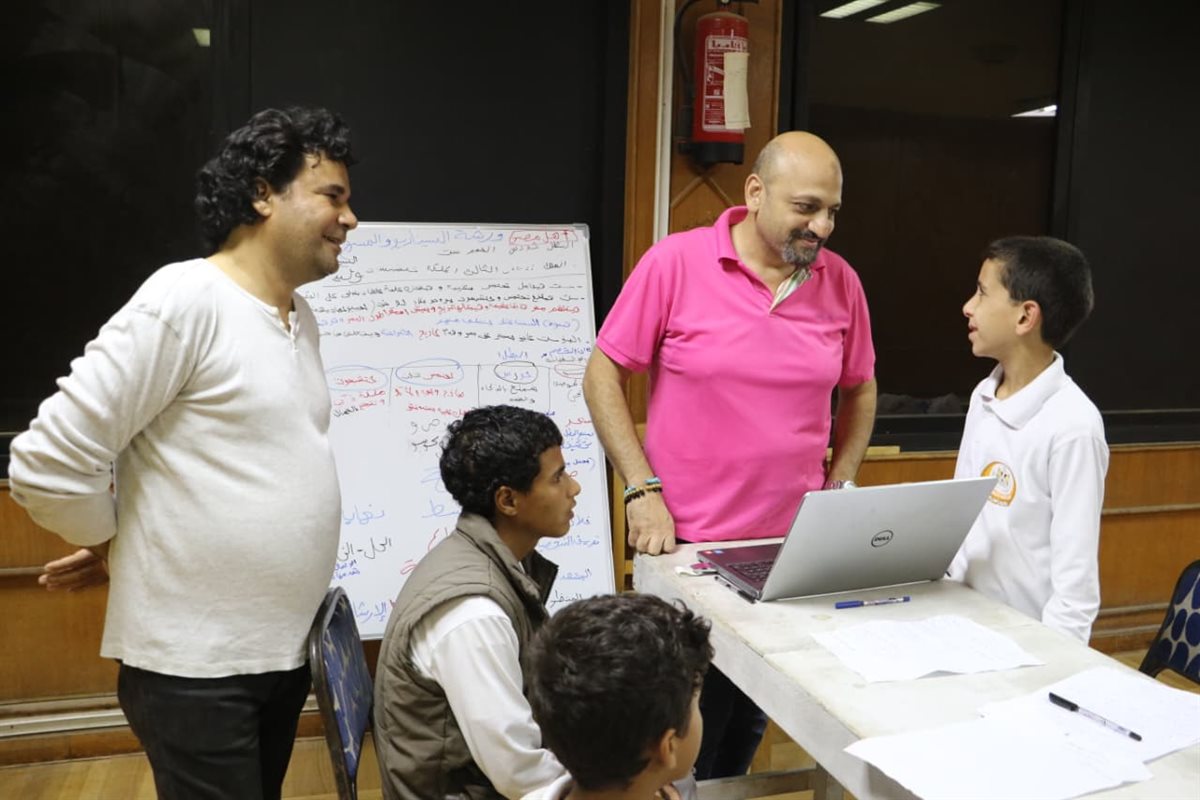 أما في ورشة كتابة السيناريو والمسرح، فقد واصل الكاتب والسيناريست وليد كمال تدريب الأطفال على مراحل الكتابة الفنية من خلال اختيار عمل بعنوان "مصر الحضارة"، وتدريبهم على كتابة المشاهد الأولى منه.