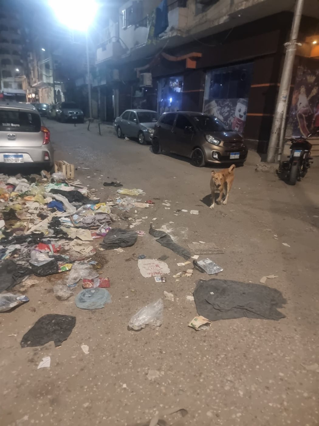 تحولت النفايات الملقاه في وسط الشارع إلى بيئة خصبة لانتشار الحشرات والقوارض، بل والأخطر من ذلك، أنها أصبحت مصدر جذب واضح للحيوانات الضالة.