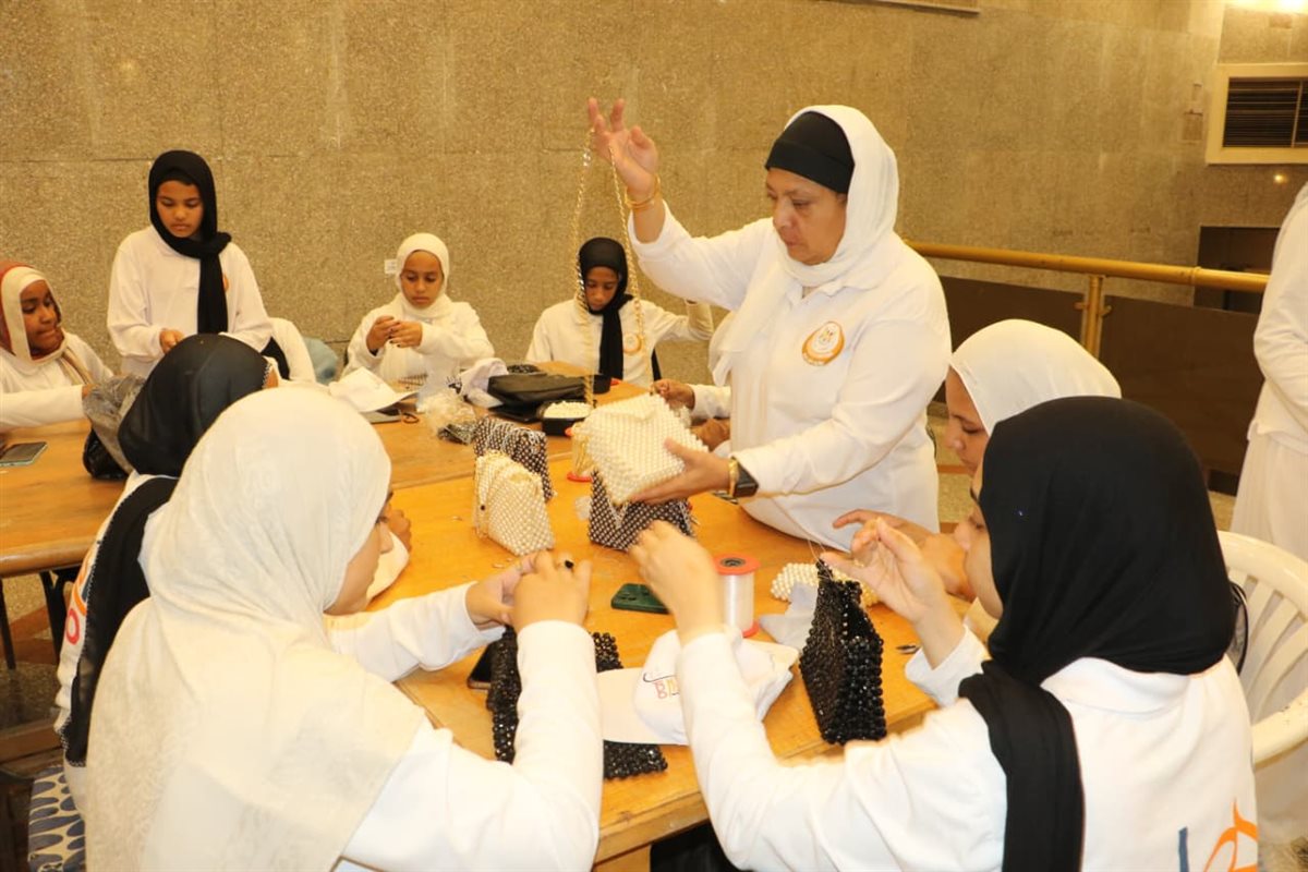 كما تابع الفنان حسني إبراهيم في ورشة الأركت أعمال التجميع النهائي للقطع الخشبية التي أنجزها الأطفال لإنتاج عدد من المشغولات الفنية، فيما استكملت المدربة منى عبد الوهاب في ورشة الشنط بالخرز تدريب الأطفال على تنفيذ حقائب مختلفة الألوان والأحجام.