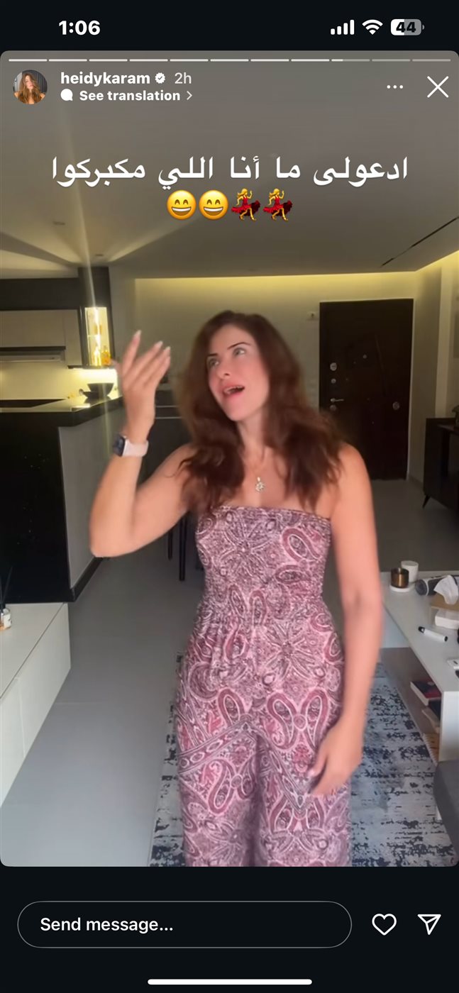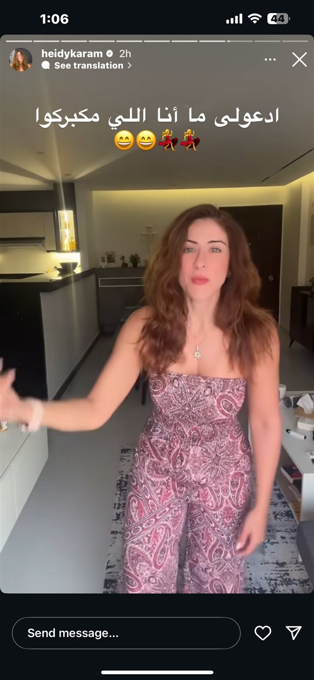 نشرت هيدي كرم فيديو لها وهي ترقص على أنغام أغنية “أنا مش فاضيلكم لما أفضى أجيلكم”، وأرفقته بتعليق: “ادعولي ما أنا اللي مكبركوا”، ما فسره البعض على أنه رد غير مباشر على زواج تيمور ومي.
