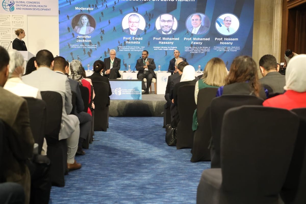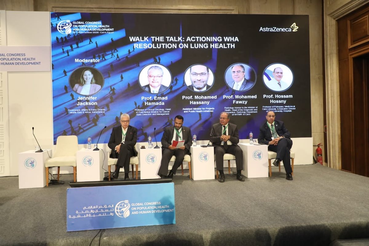 نظمت وزارة الصحة والسكان جلسة حوارية بعنوان «الأقوال والأفعال: تنفيذ قرار جمعية الصحة العالمية بشأن صحة الرئة»، ضمن النسخة الثالثة من المؤتمر العالمي للسكان والصحة والتنمية البشرية (PHDC’25)، برعاية فخامة الرئيس عبدالفتاح السيسي، وشعار «تمكين الأفراد، تعزيز التقدم، إتاحة الفرص»، بالعاصمة الإدارية الجديدة (12-15 نوفمبر 2025).