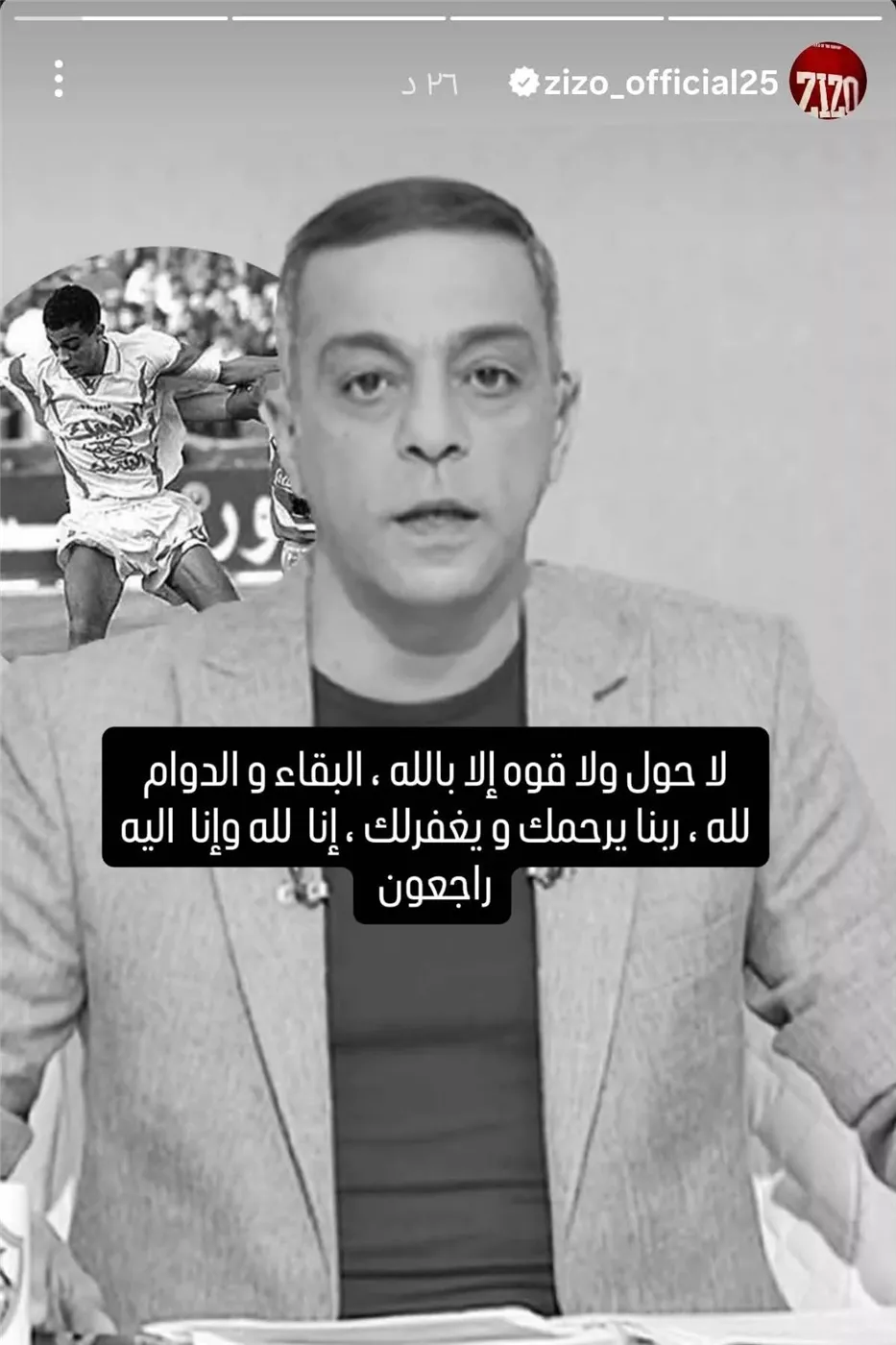 زيزو ينعي نجم الزمالك الأسبق محمد صبري: "ربنا يرحمك ويغفر لك"