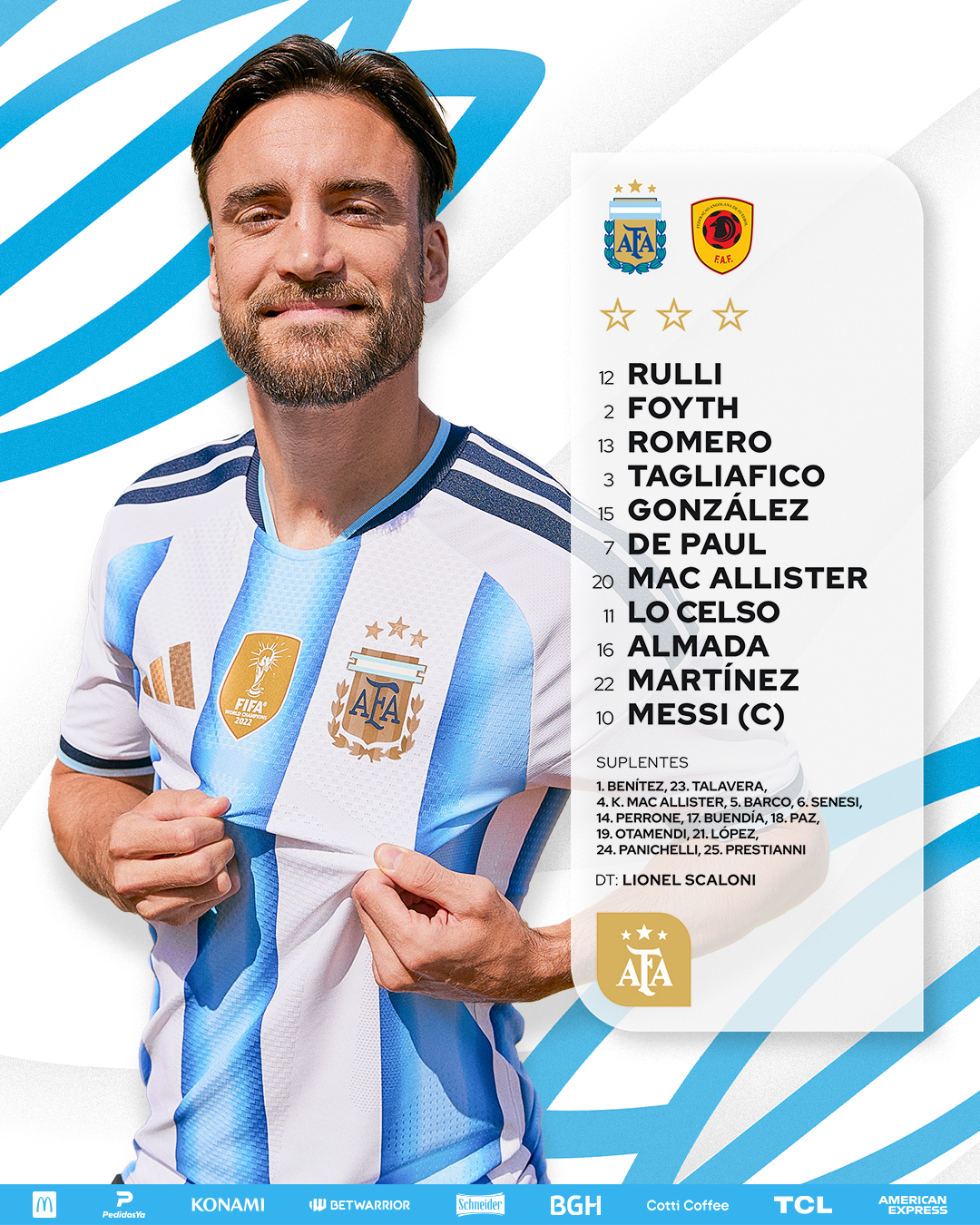 أعلن المدير الفني لمنتخب الأرجنتين عن التشكيل الرسمي للمباراة الودية التي تجمعه مع أنجولا علي ملعب "11 نوفمبر" بالعاصمة الأنجولية "لواندا"، ضمن استعدادات المنتخبين لخوض الاستحقاقات القادمة.