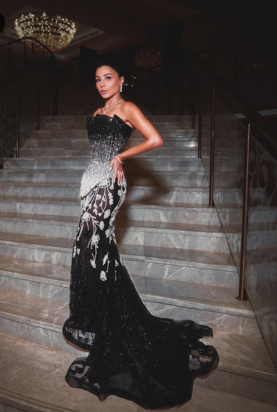 وتألقت مهيرة عبدالعزيز بإطلالة ساحرة، مزجت بين الأناقة والسحر بشكل خاص، مرتديه فستان طويل مجسم ينتمي لقصة الكب و الكورسية لتواكب موضة فساتين خريف وشتاء 2025. 2026، صمم من قماش ناعم طرز لتصبح لوحه فنيه بين الأبيض في الأسود يستعرض قوامها الرشيق.