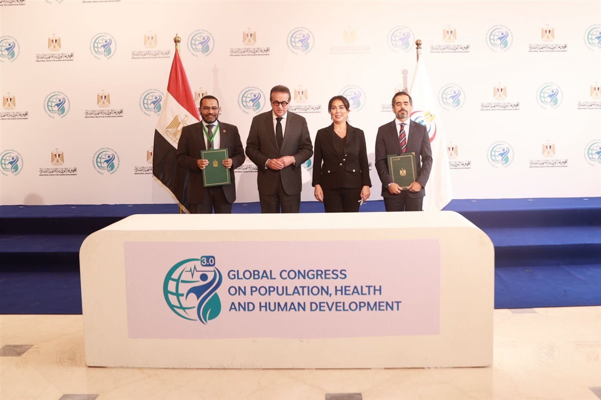 شهد الدكتور خالد عبد الغفار، نائب رئيس مجلس الوزراء للتنمية البشرية ووزير الصحة والسكان، توقيع 5 بروتوكولات تعاون مع شركات «أسترازينيكا»، «ميندراي» للإلكترونيات الطبية الحيوية، «فويانس ميديكال تكنولوجي»، «لوريال» لمستحضرات التجميل، وجامعة الأزهر، على هامش فعاليات النسخة الثالثة من المؤتمر العالمي للسكان والصحة والتنمية البشرية (PHDC’25)، برعاية السيد الرئيس عبد الفتاح السيسي، تحت شعار «تمكين الأفراد، تعزيز التقدم، إتاحة الفرص»، خلال الفترة من 12 إلى 15 نوفمبر الجاري.