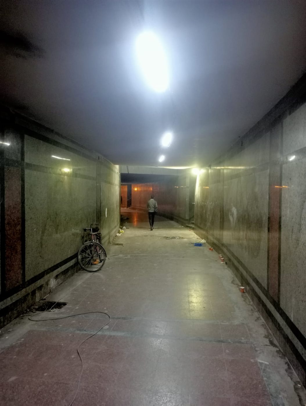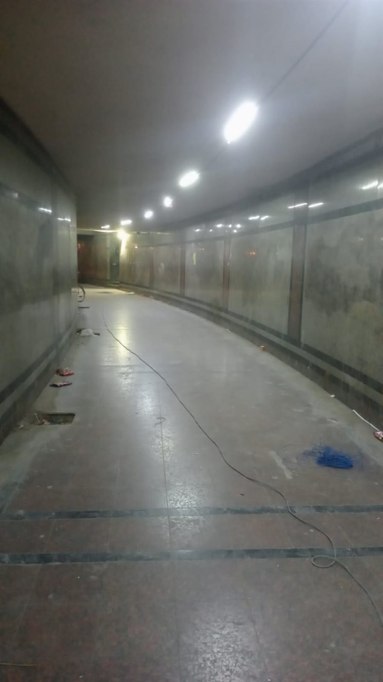 كما رصدت تجمعات مياه ملوثة ودرجات عالية من الرطوبة اختلطت بالاتربة على الأرضيات والجدران ما كشف عن خلل واضح في أعمال الصرف والتنظيف، فضلًا عن تحويل عدة نقاط داخل الممر الى بؤر تلوث ثابتة