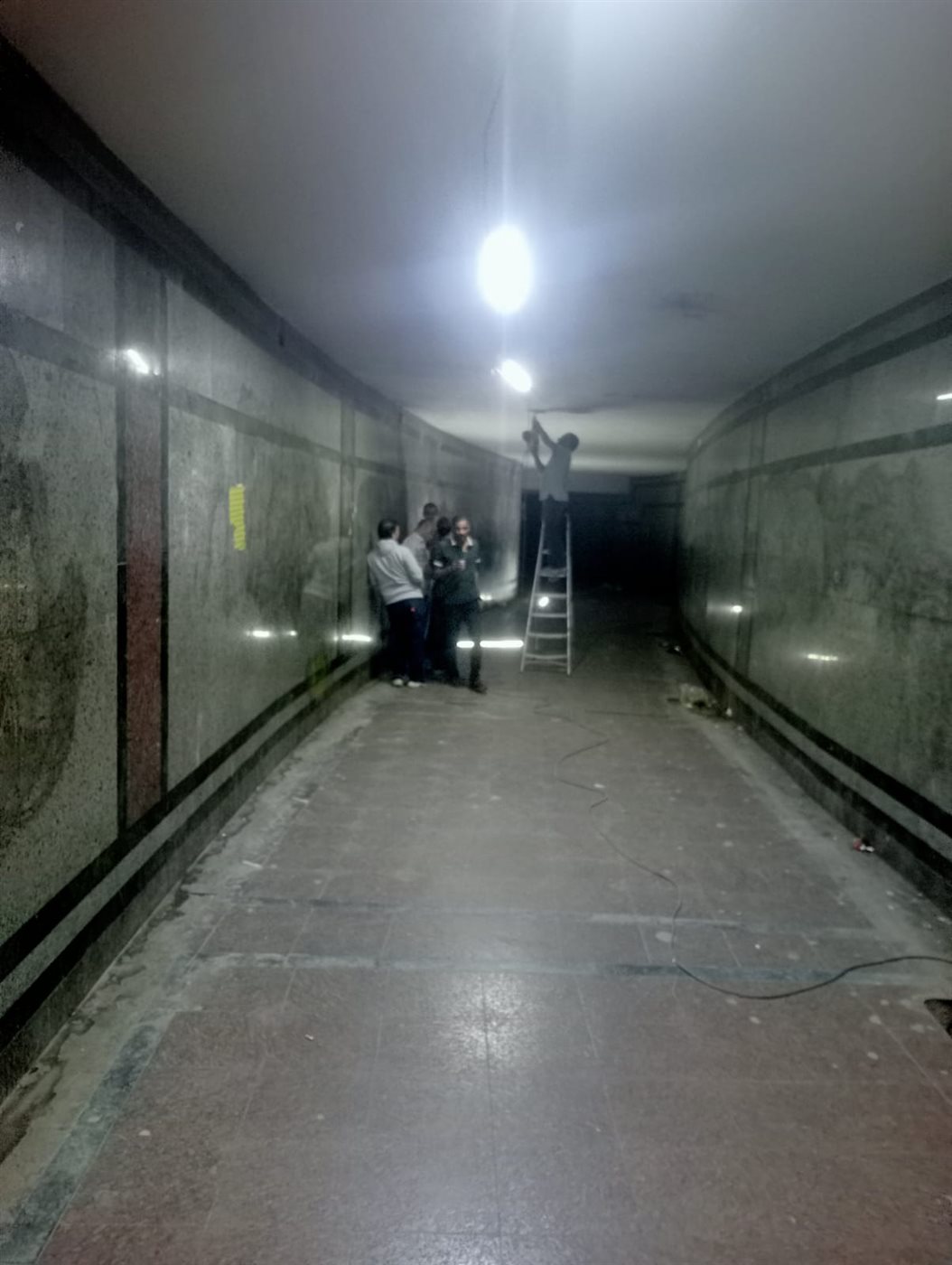 حيث انطلقت حملة ميدانية موسعة شملت رفع المخلفات من داخل الممر ومعالجة أماكن الرطوبة وإعادة تشغيل وحدات الإنارة بعد مراجعة الأسلاك المكشوفة وإزالة بقايا التجهيزات التالفة .