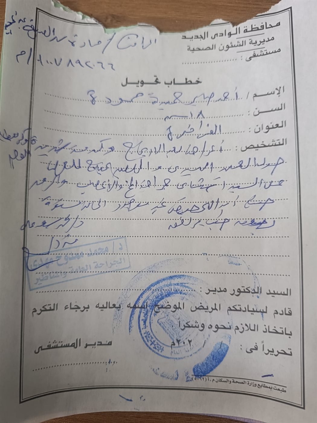 بينما تم تحويل أحمد صابر حميد البالغ من العمر 18 سنة والمقيم بمركز الفرافرة إلى مستشفى جامعة الأزهر بأسيوط بعد تعرضه لارتجاج في المخ.
