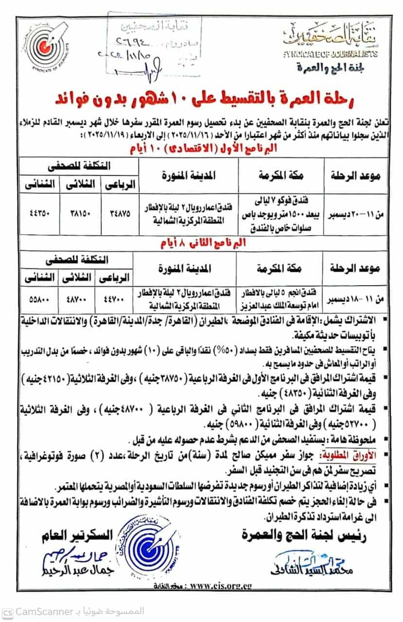 نقابة الصحفيين: رحلة العمرة بالتقسيط على 10 شهور من دون فوائد