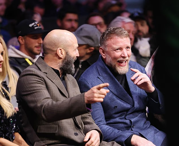 جلس المخرج جاي ريتشي إلى يسار ستاثام حيث بدا الاثنان غارقين في الضحك خلال انتظار بدء المواجهة.