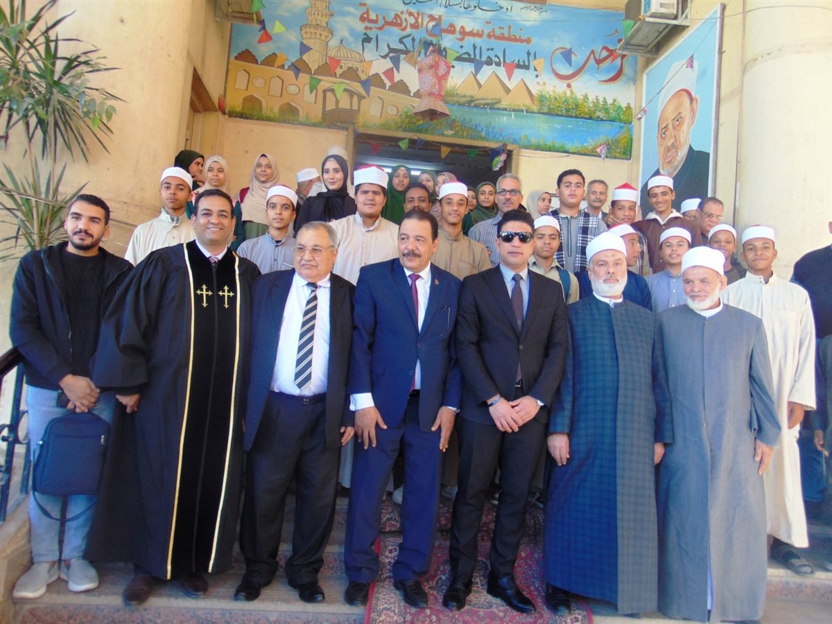 حضر الاحتفالية الدكتور محمد حسني، رئيس الإدارة المركزية للأزهر الشريف بسوهاج، والدكتور أحمد حمادي، رئيس فرع المنظمة العالمية لخريجي الأزهر بسوهاج، والدكتور مرتضى أبو شارب، مدير عام المواد الثقافية ورعاية الطلاب، والقس كيرلس مهني، وكيل مطرانية سوهاج، والقس مايكل يعقوب، رئيس الطائفة الإنجيلية بالمحافظة والنائبة غادة الضبع عضو مجلس الشيوخ، إلى جانب عدد من مديري الإدارات، والقيادات التنفيذية والشعبية، وممثلي الكنائس، ونواب المحافظة.
