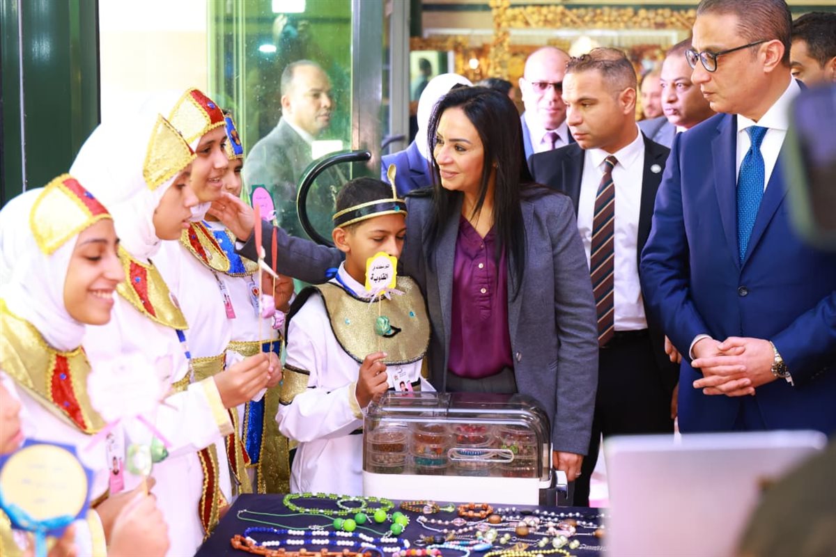 وزيرة التضامن ومحافظ الفيوم يتفقدان معرض "كنزي" للحرف اليدوية