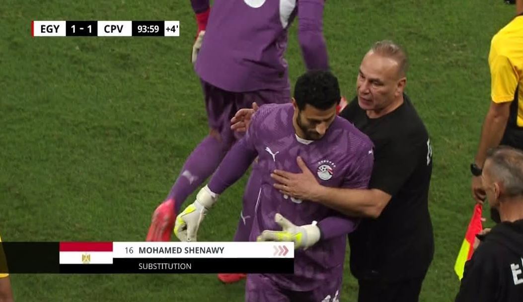 أبدى محمد الشناوي حارس مرمى منتخب مصر، غضبه من التبديل أمام كاب فيردي، في مباراة تحديد أصحاب المركز الثالث والرابع في كأس العين الدولية.