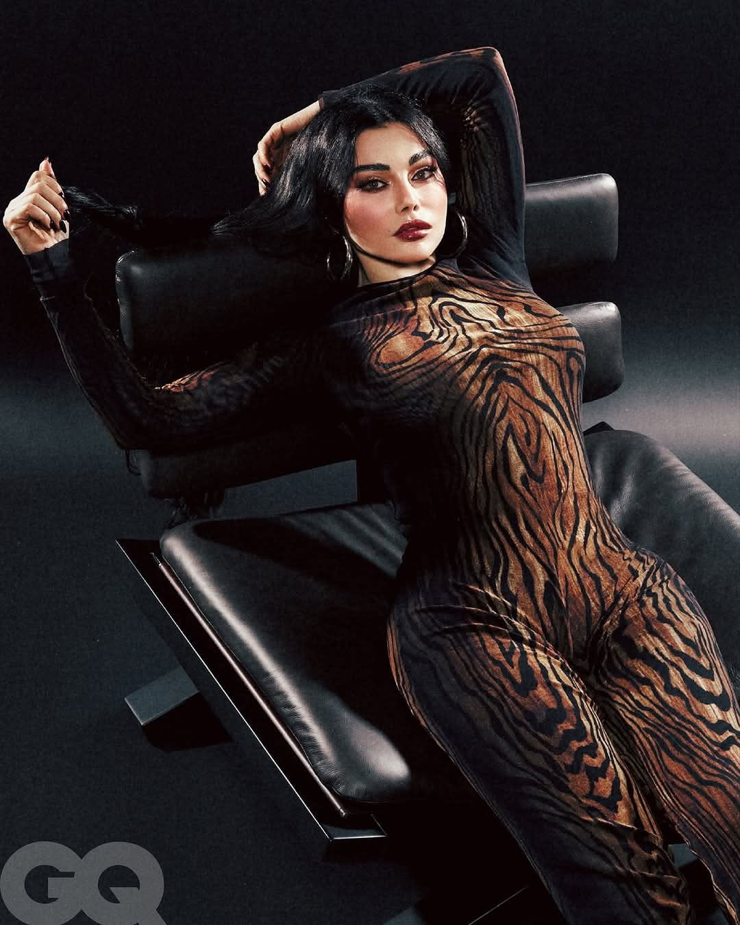 وظهرت في إطلالة أخرى بجمبسوت تايجر صمم من قماش ناعم لتبرز قوامها الرشيق.