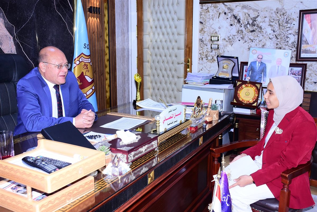 طالبة من ذوي الإعاقة بجامعة سوهاج تجري حوارًا ملهمًا مع رئيس الجامعة حول تمكين ودمج الطلاب